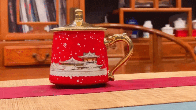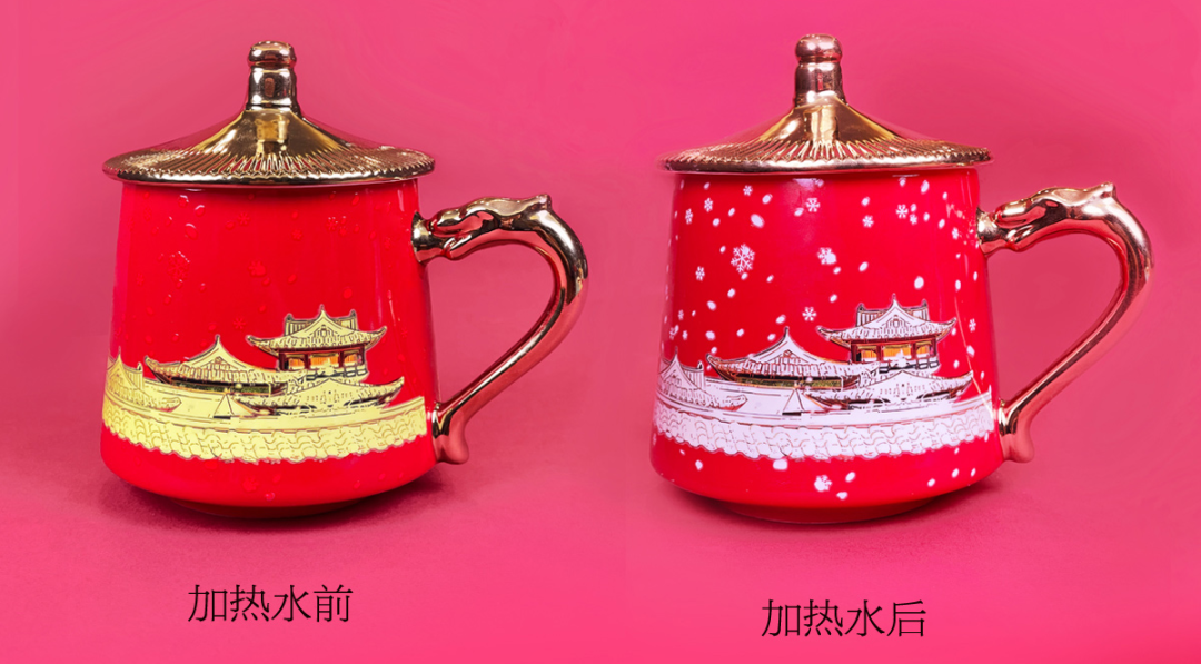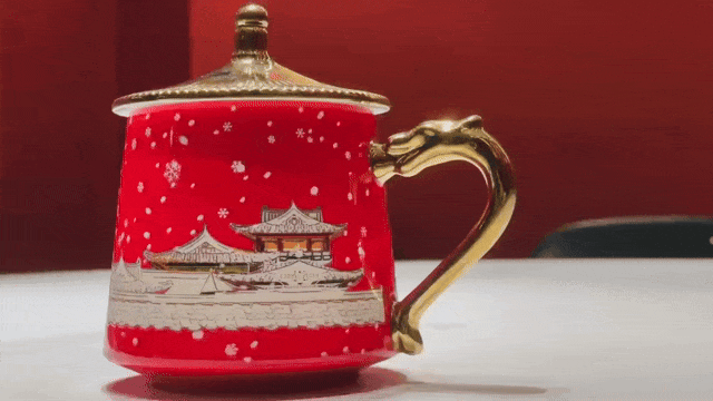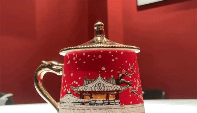 沉浸式欣赏,遇热杯身图案就会渐渐晕开,呈现出《金銮瑞雪》的惊艳之美。