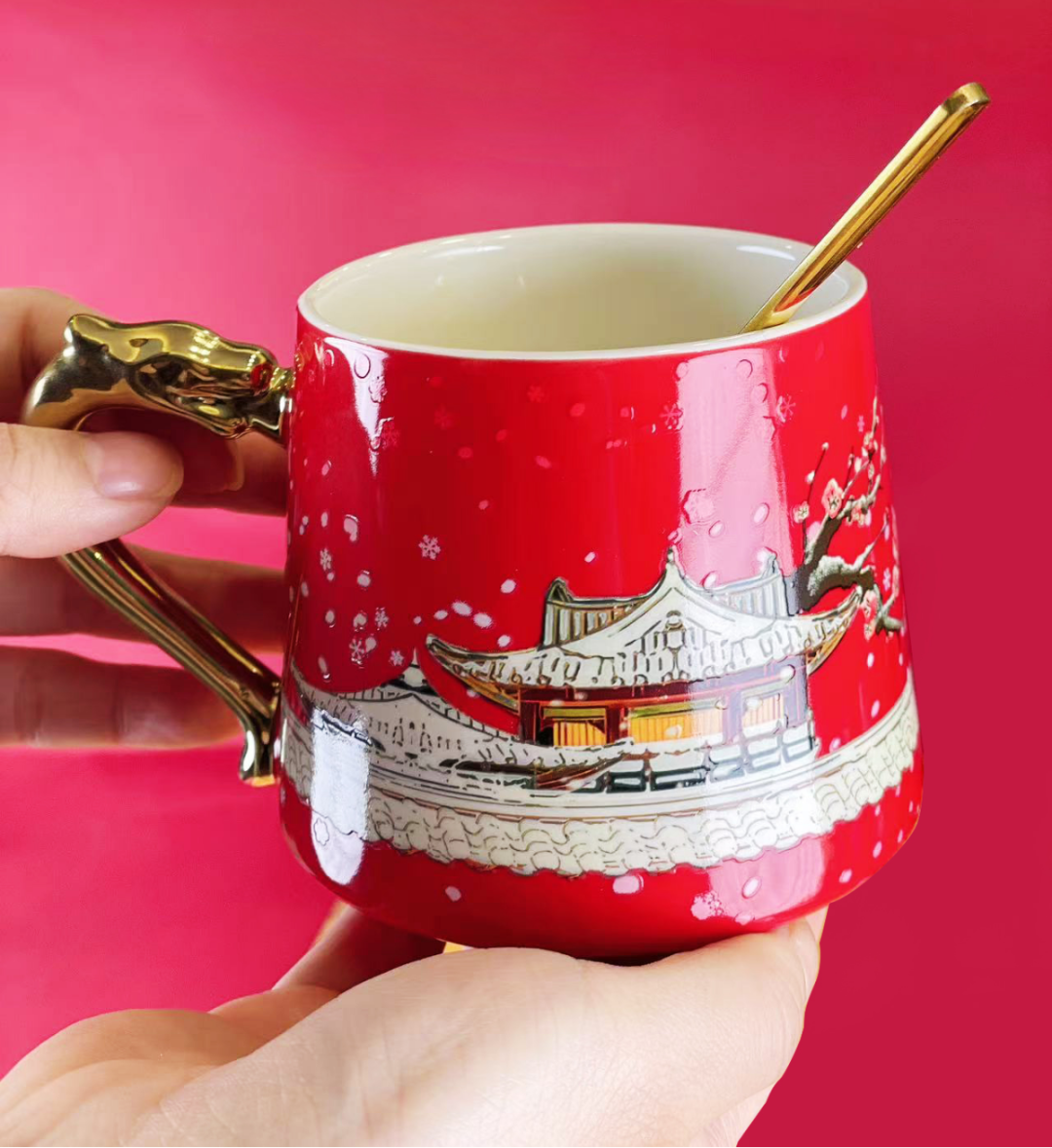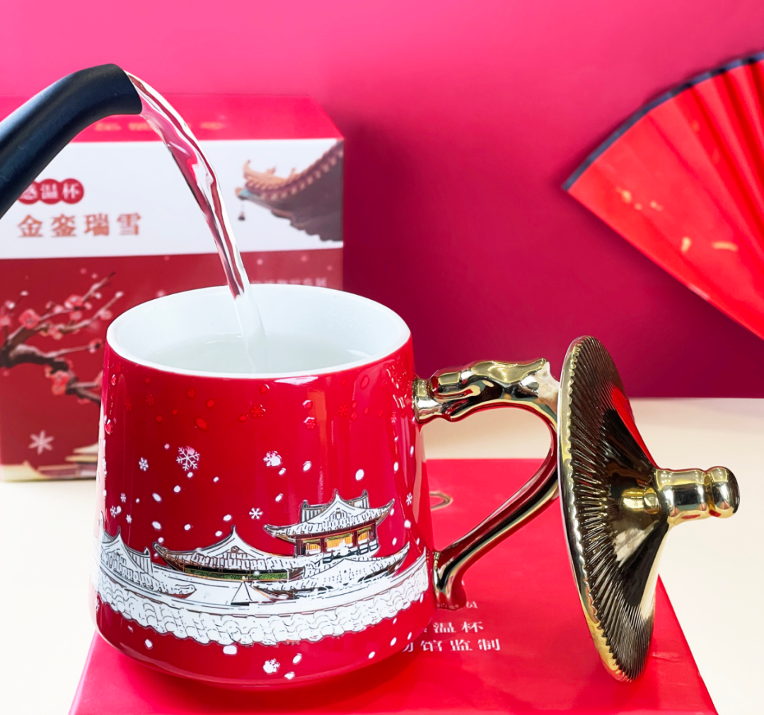 2、原故宫博物院文物修复专家王恒涛大师匠心之作,传统鎏金工艺打造。3、暗藏金銮瑞雪图,遇热即显,片片雪花悄然绽放,350ml大容量,精美礼盒包装,宜礼宜藏。