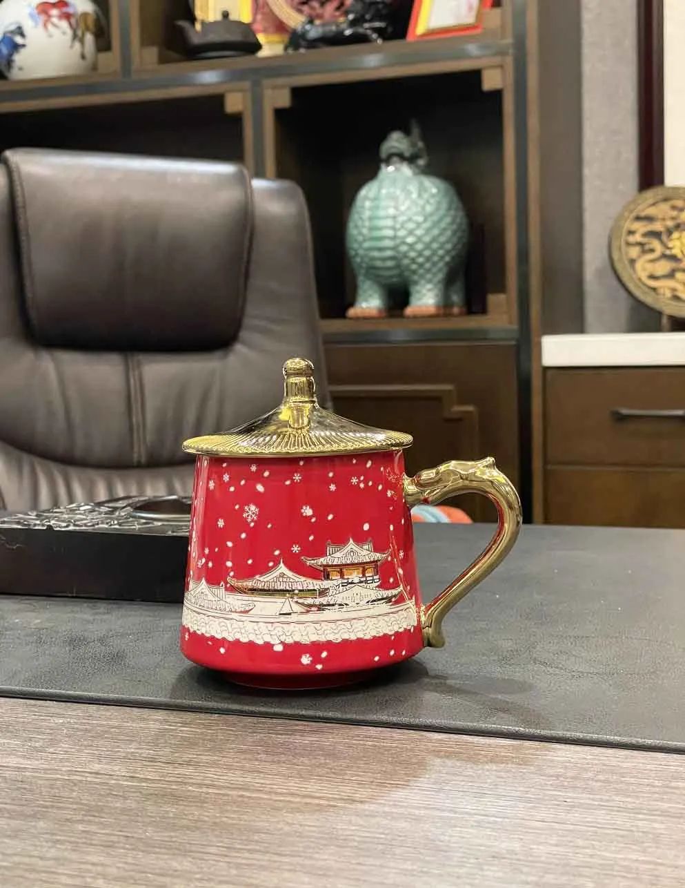 杯盖、杯柄,特别采用了中国古代八大金工艺术之一的鎏金工艺,金光熠熠,尽显奢华品质。