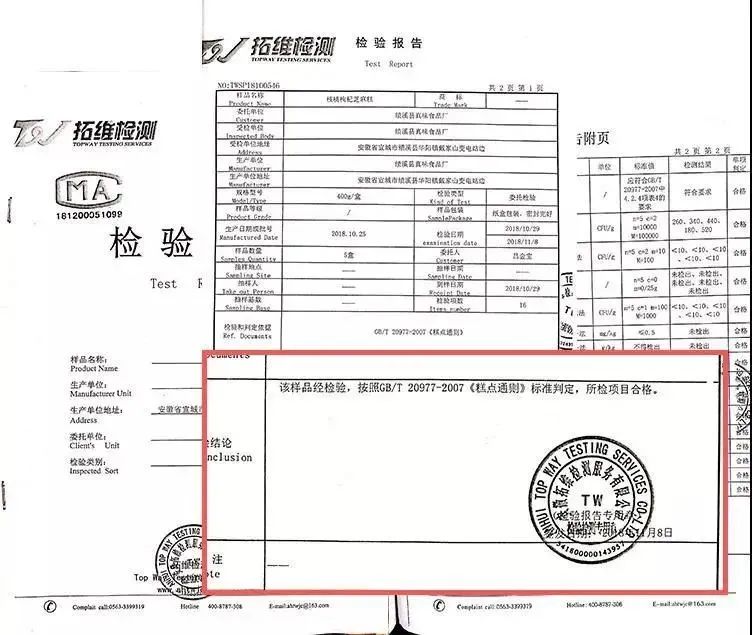 我们的芝麻核桃糕虽是纯手工制作,但通过严格的食品安全检测,大家可以放心食用。