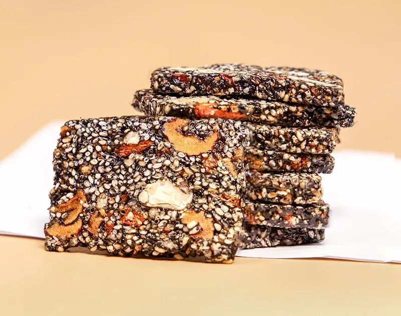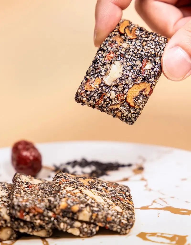 为了还原芝麻糕的口感,除了精选原料以外,精工细作,把控制作细节也很关键,做成的每一块芝麻核桃糕都是看得见的实在。