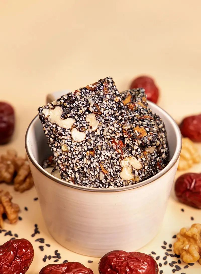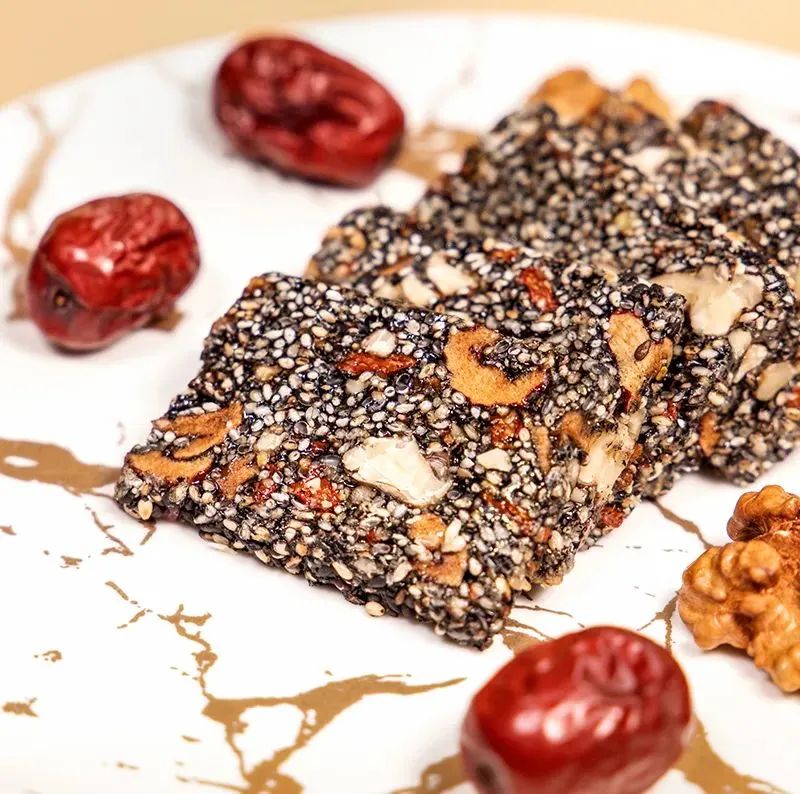 怎么办呢?不用担心!小编推荐办公室妹子都在吃的“滋补零食”–芝麻核桃糕。