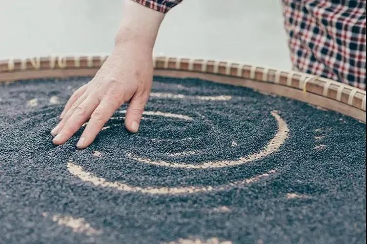 芝麻仔细挑选后,用白纱布包着反复清水沥洗,至少清洗5次,保证没有细沙,再端到阳光下自然晾干。