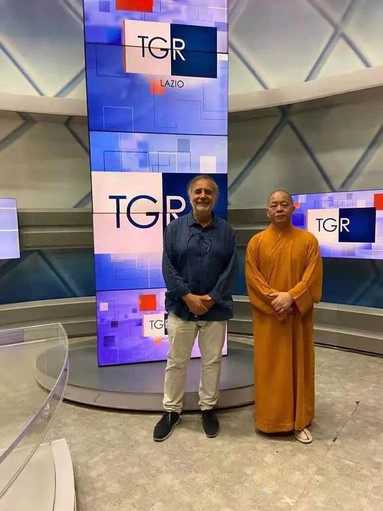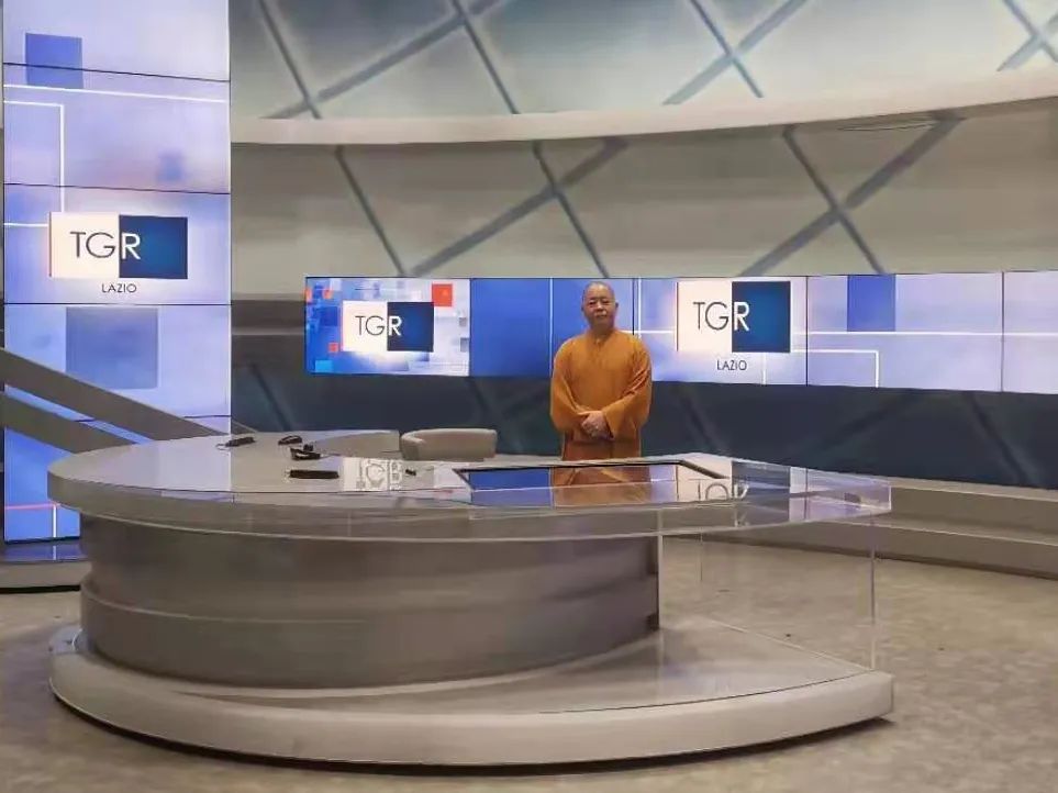 意大利当地时间2021年7月15日晚上七点半,意大利少林拳法联盟负责人释延辉接受意大利电视3台“拉齐奥新闻联播”栏目现场采访。