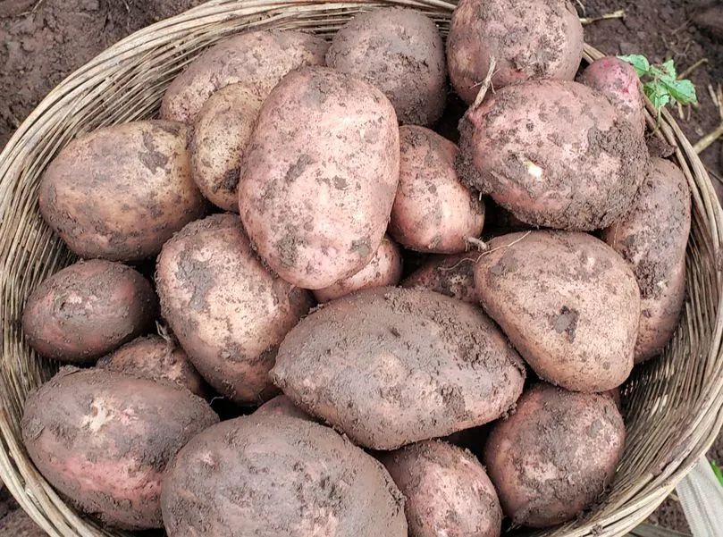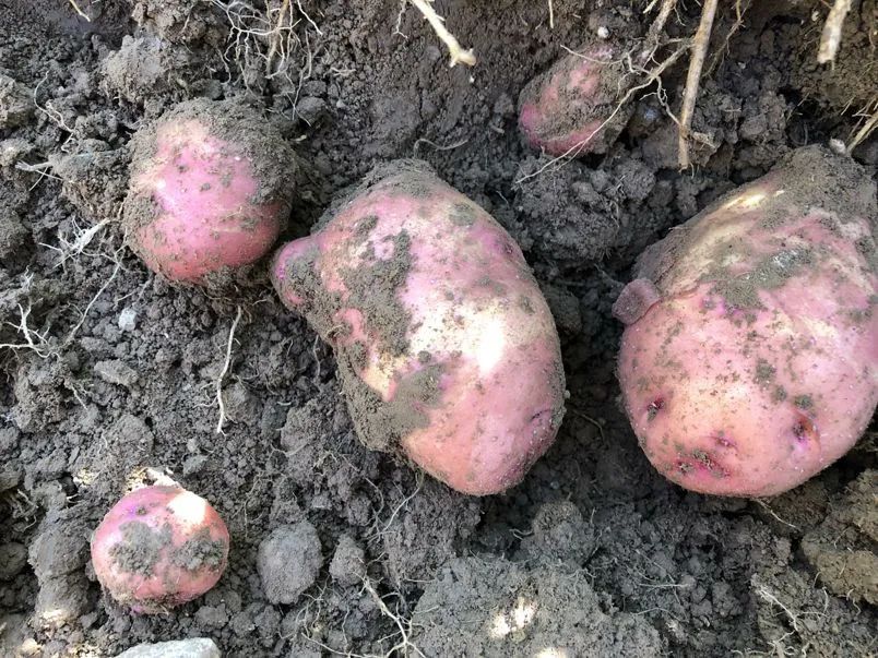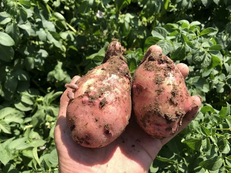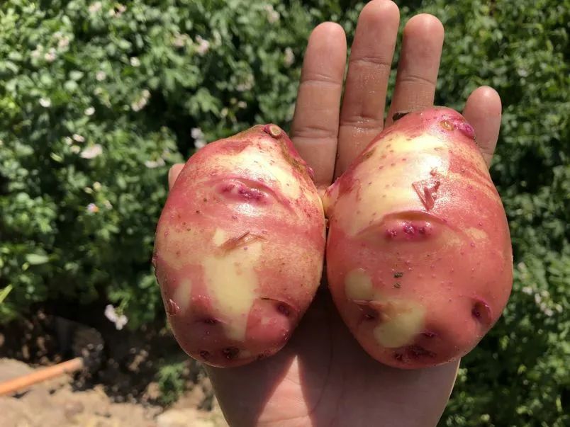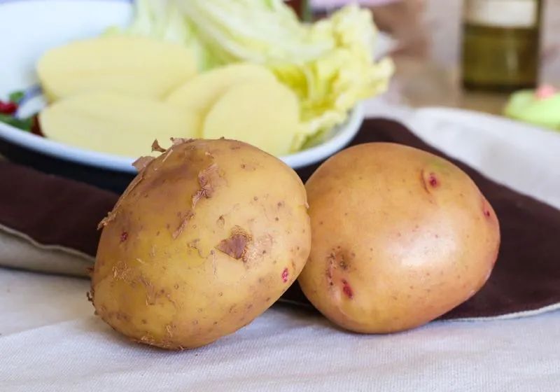 注:新鲜土豆外表皮比较嫩,因为有两层皮,现挖出来经过摩擦,表皮容易掉。