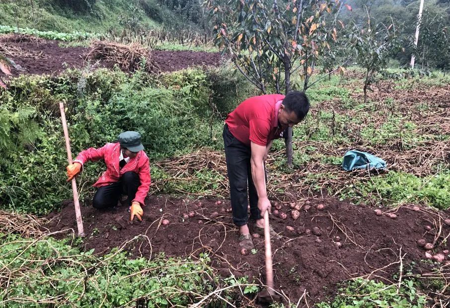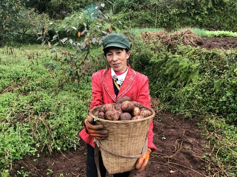 不止是李叔、刘奶奶家如此,种植土豆的彝家农户都是这样把土豆弄下山的。勤劳的彝家人清晨上山采挖土豆,下午把一天采挖收获的土豆背下山。