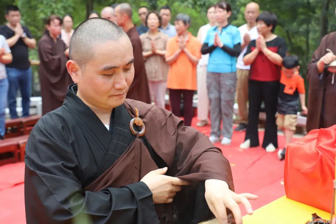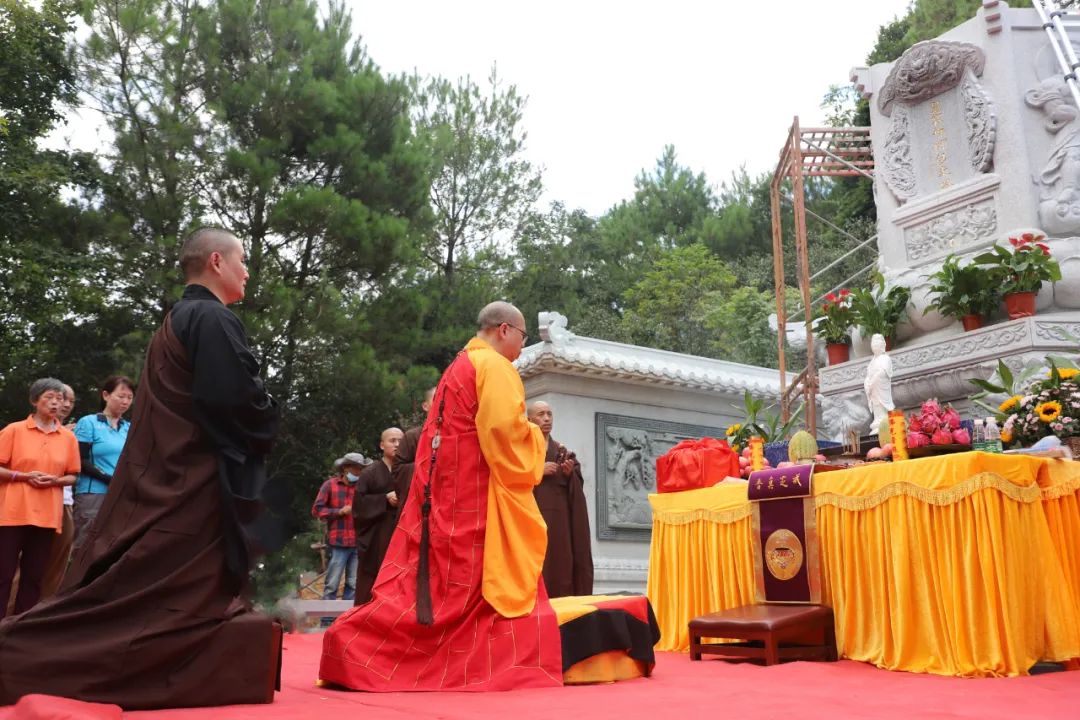 下午3时,在仰山慧寂禅师舍利塔前举行洒净仪式,四众弟子持诵大悲咒,随着声声梵呗、袅袅佛音,云门寺方丈明向大和尚以大悲水饶益众生,散洒各处。洒净结束后举行了上供仪式,圆满后,云门寺首座、广东佛学院云门学院副院长兼教务长、正觉禅寺恢复重建筹备负责人性国法师将仰山慧寂禅师舍利安奉入塔。