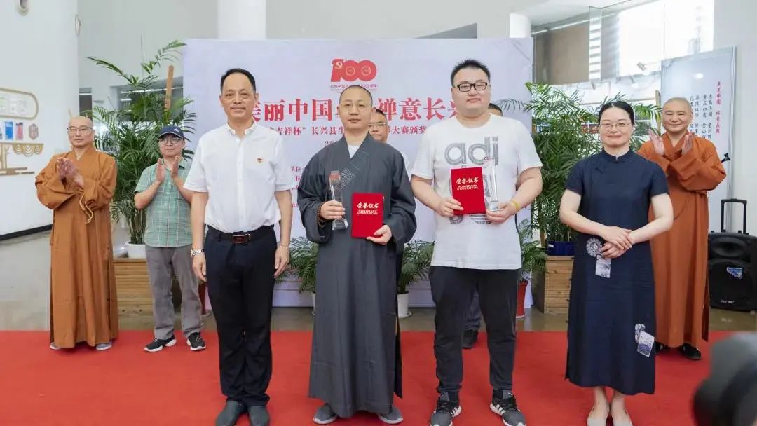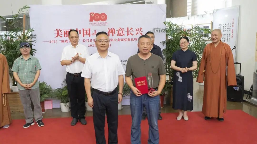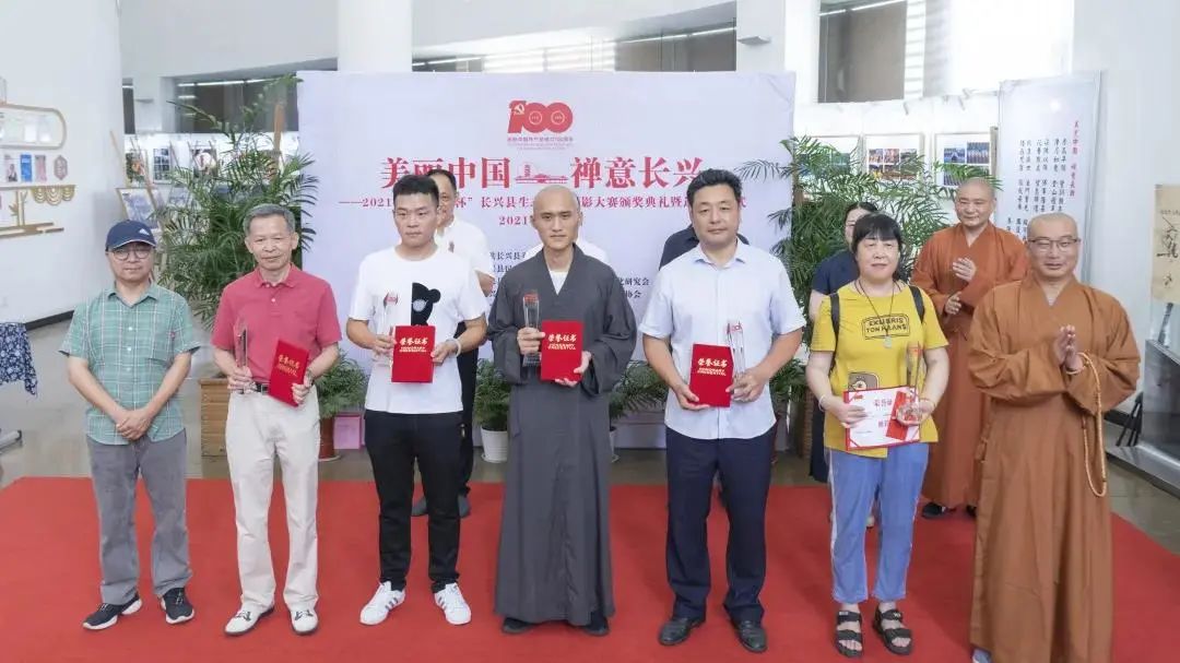 长兴县摄影家协会主席许要武、长兴县佛教协会副会长体禅法师为评委会推荐奖获得者颁奖。