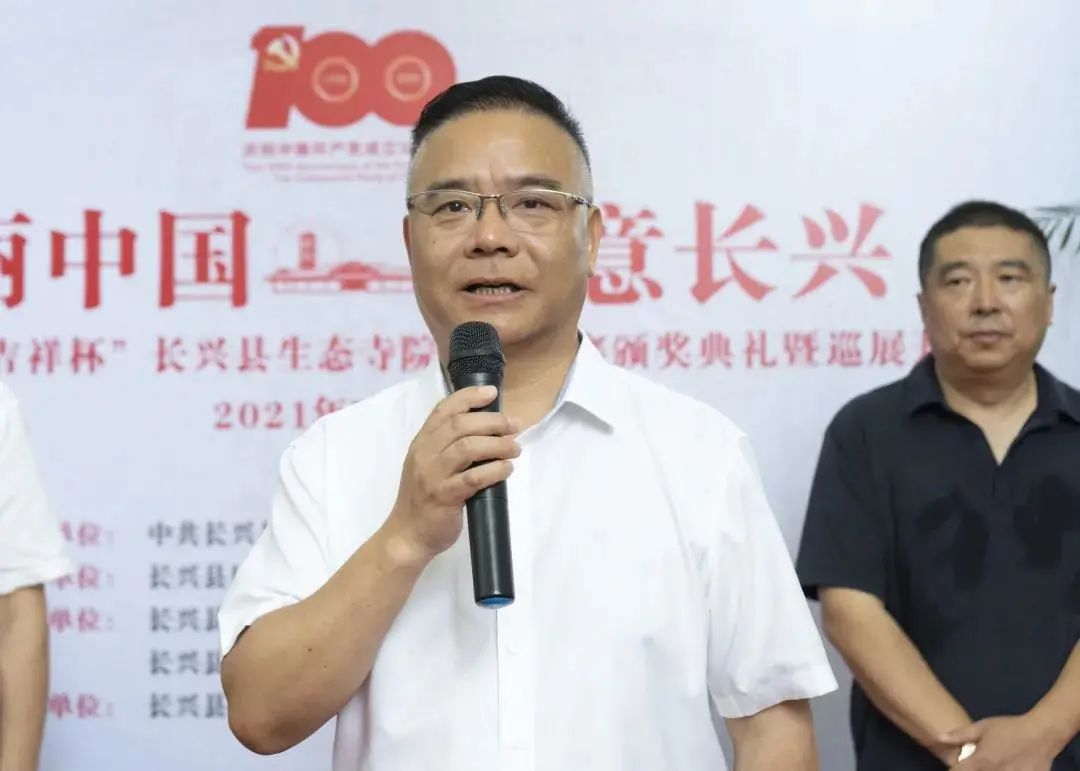 长兴县委常委统战部部长何文全为大赛一等奖获得者颁奖。