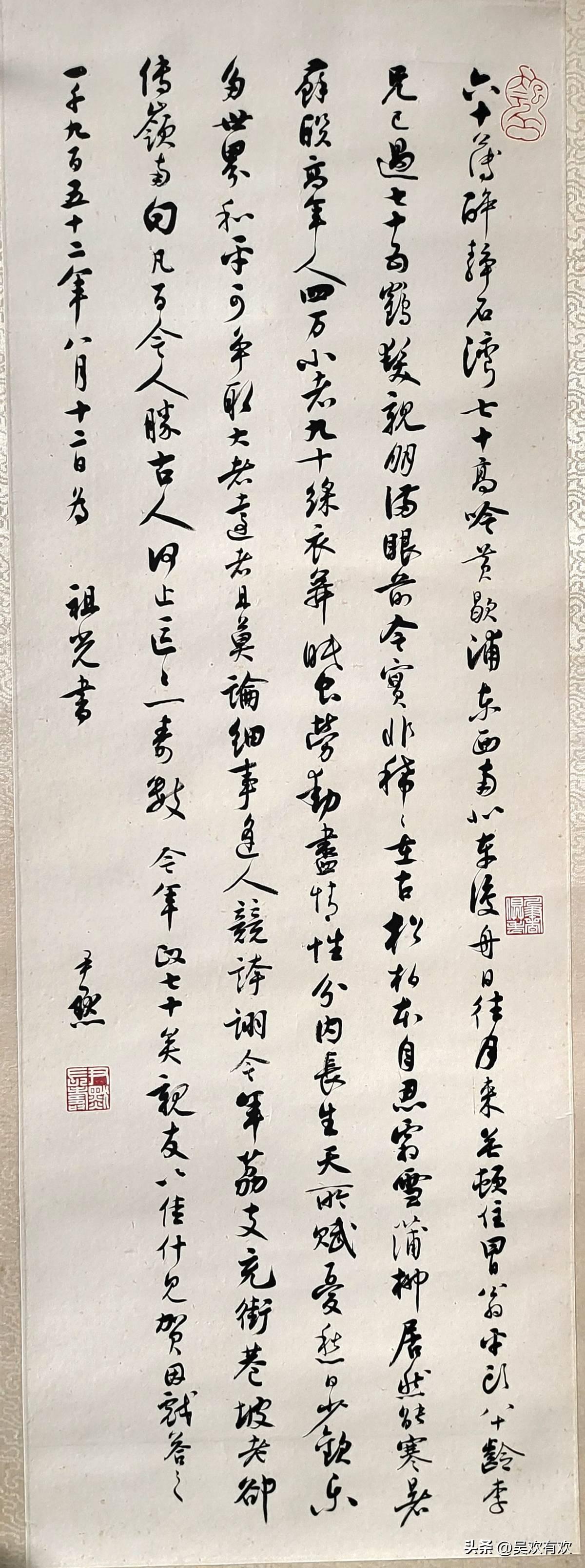 本人与吴欢师弟有三代世交之雅,先祖父沈尹默先生与故宫博物院创建人之一吴瀛先生私交甚好有通家之谊,其公子著名剧作家、导演吴祖光先生刚出生便曾被我祖父抱在怀里甚为喜爱,与我父亲、姑姑、叔叔一起长大,自幼拜在先祖父门下研习书法,跟祖光先生一起常来我家习字的还有一位祖父女弟子,著名的合肥张家四姐妹的小妹张充和女士这里顺带一提。