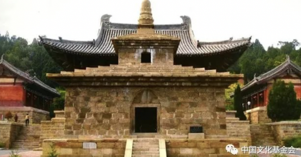 穿过山门中轴线上的便是舍利塔。此塔在法兴寺发展史上有着极其重要的作用。史传唐咸亨四年( 673年)高祖李渊第十三子元懿任潞州刺史,赠法兴寺舍利子并建石塔于高台之上。现有方形石塔,形制为国内罕见,外形如殿,一层重檐,通体以砂条石垒砌。正南辟拱形石板门,塔心室装饰莲花藻井。