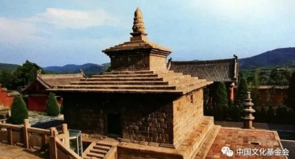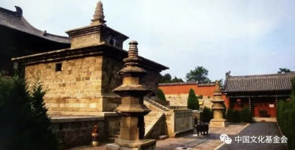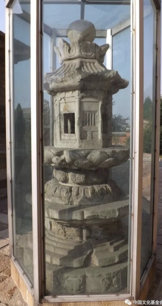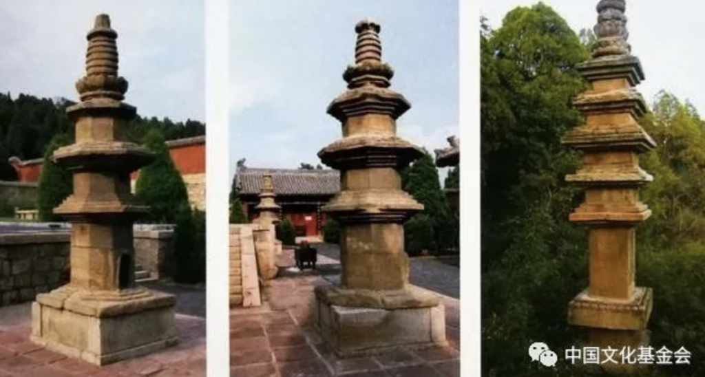 法兴寺现存唐石塔5座,元石塔1座。上三图分别为院内东西的唐石塔,及寺院外西北角的元代石塔。下图为前院中舍利塔及舍利塔前方的两座唐塔。