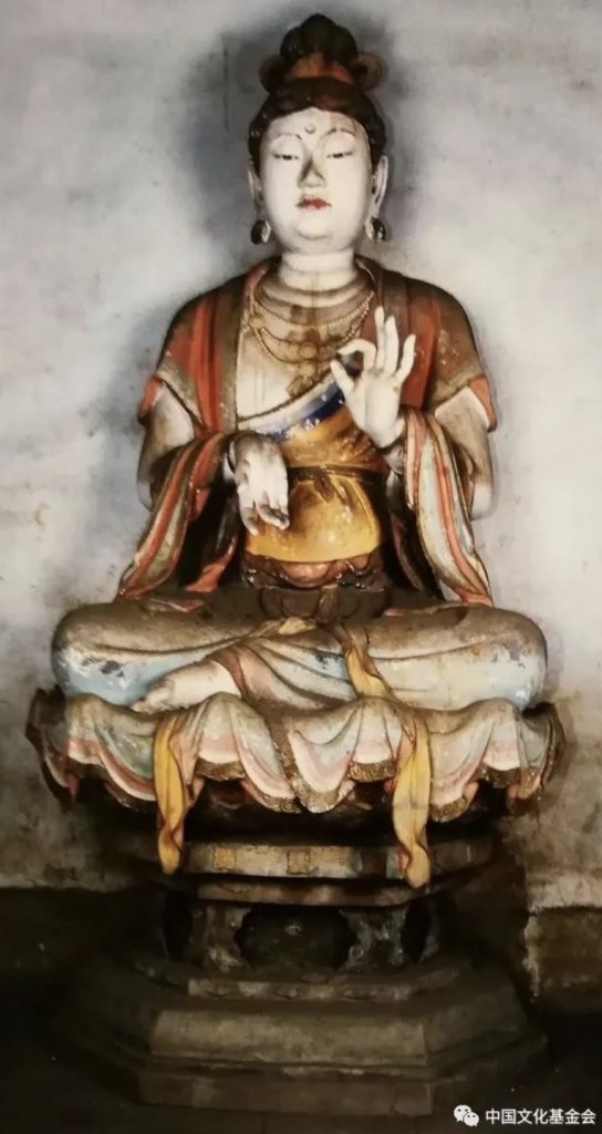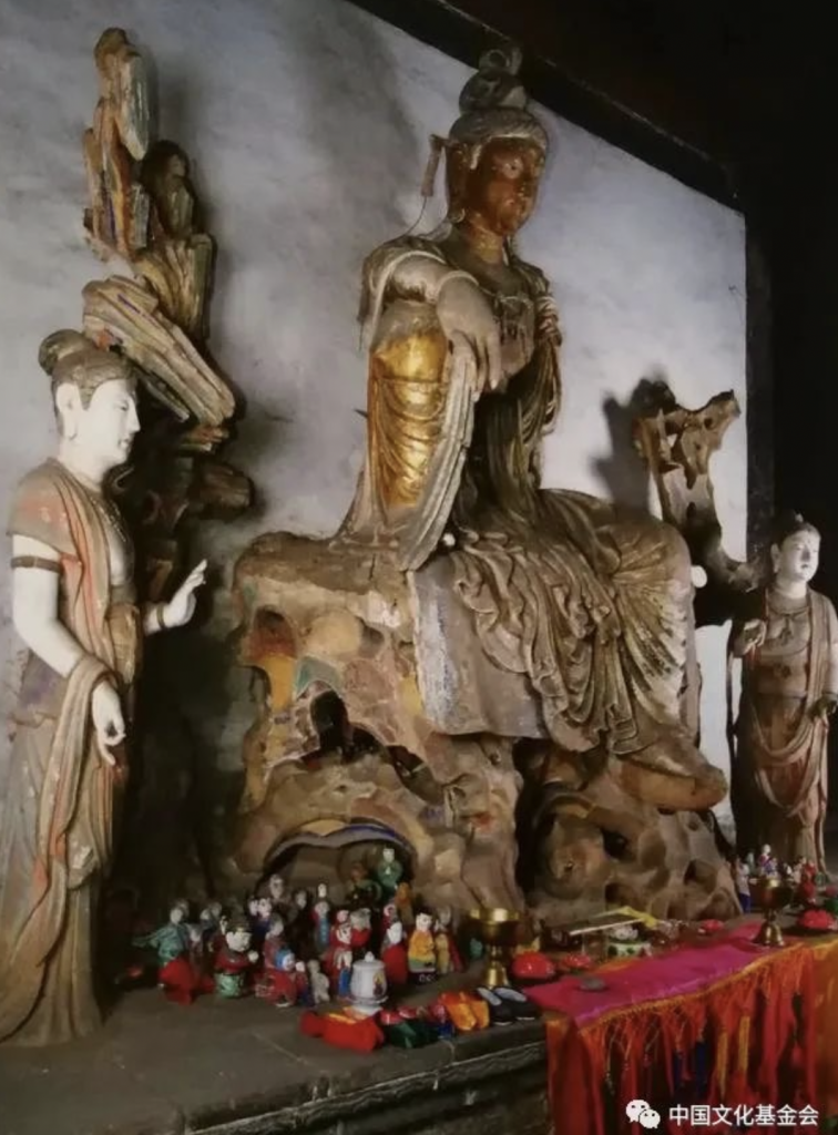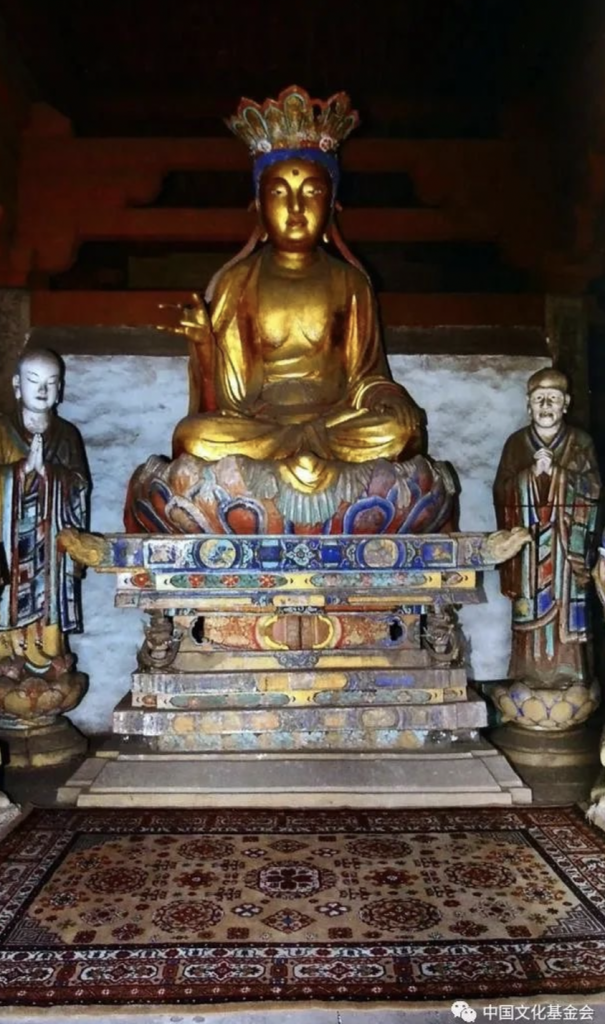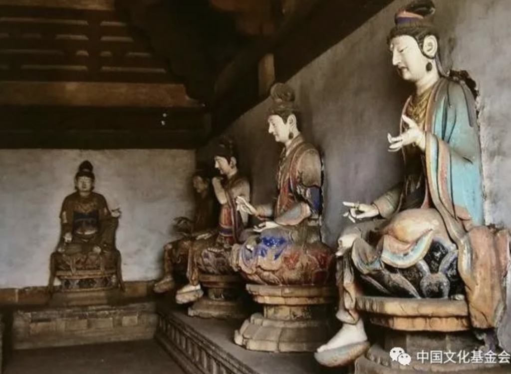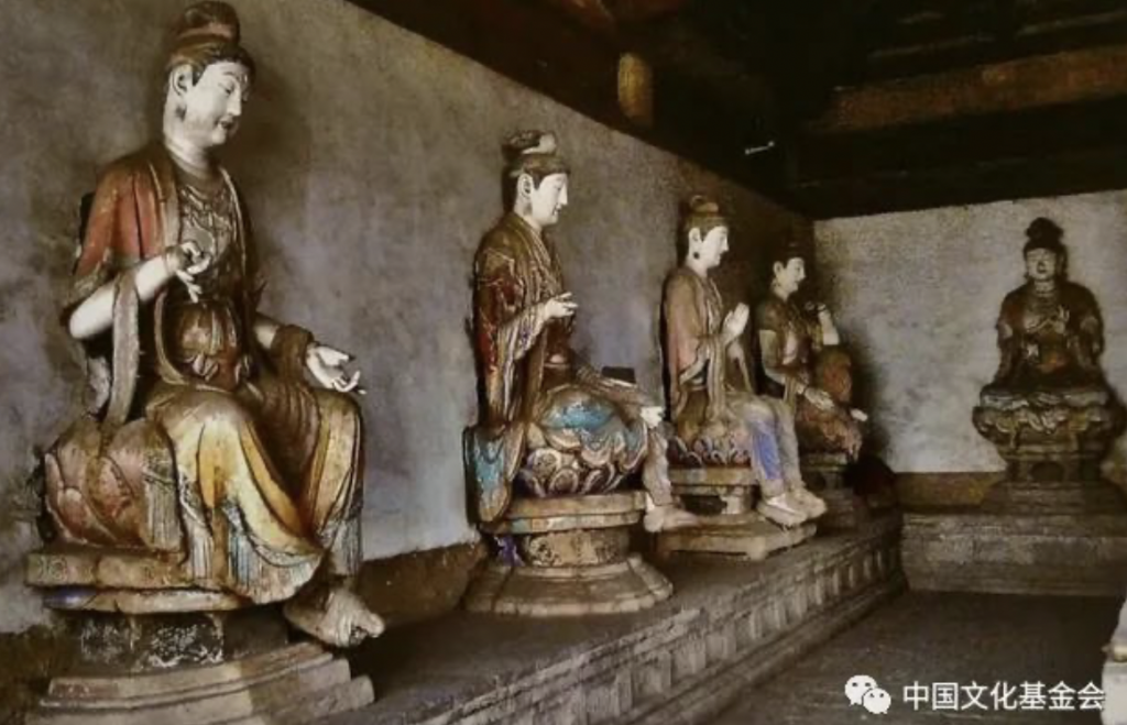 据宋碑记载,殿内主要佛像均在政和元年(公元1111年)塑成,900年间历代多次维修装饰,多数已有三层彩绘饰面,但大多数佛像主体造型与整体美感仍保留了宋塑的原韵。佛坛上造像以佛陀为核心,庄严、祥和而稳定。