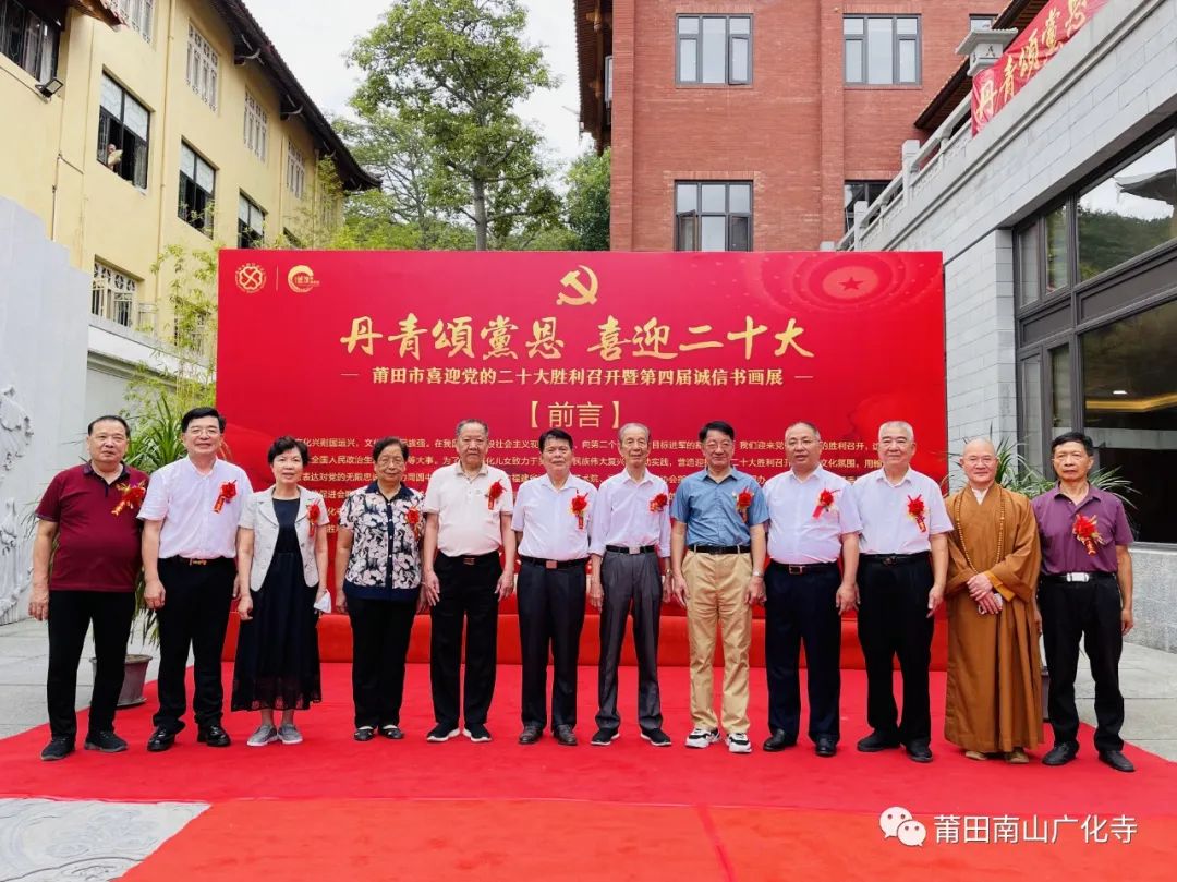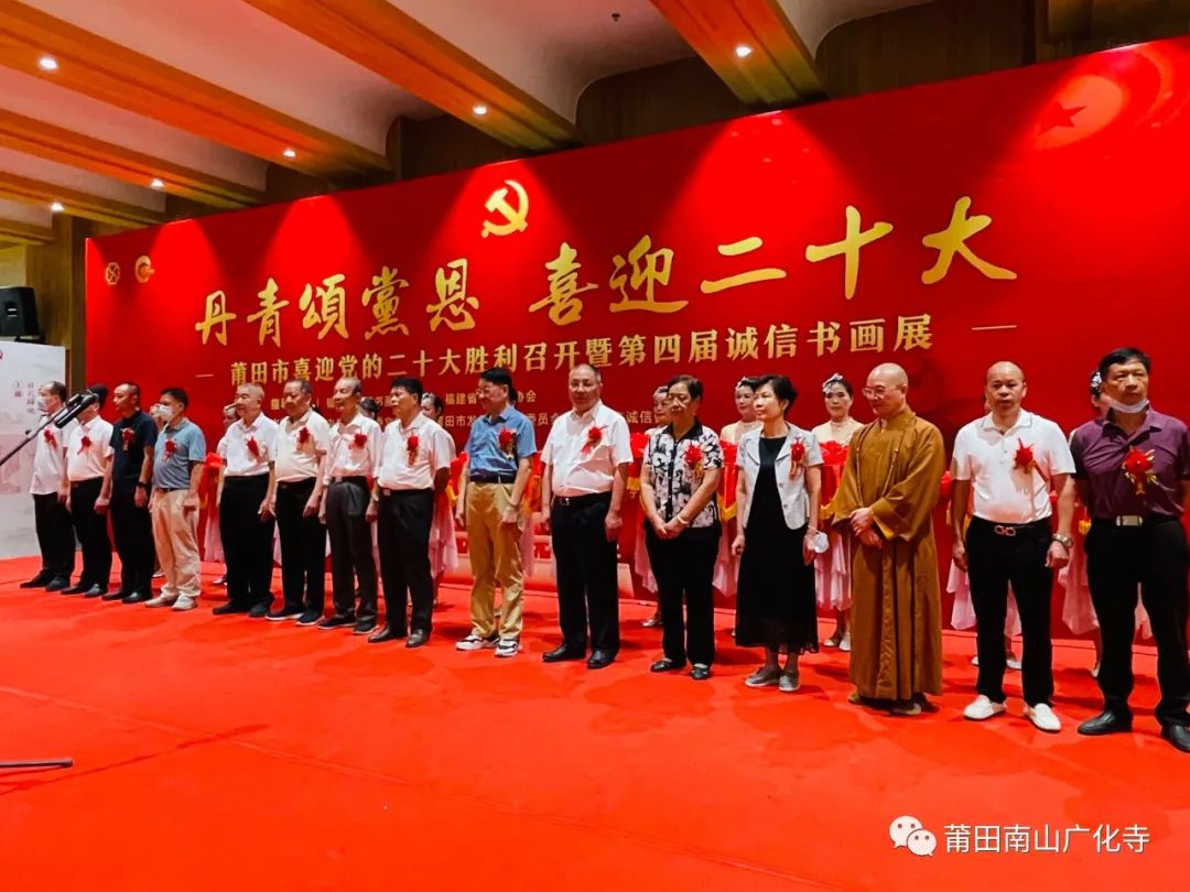 10月6日上午,为欢庆党的二十大的胜利召开,“丹青颂党恩 喜迎二十大——莆田市喜迎党的二十大胜利召开暨第四届诚信书画展”在莆田南山广化寺法缘堂隆重举办。本寺方丈本性大和尚参加开幕式。