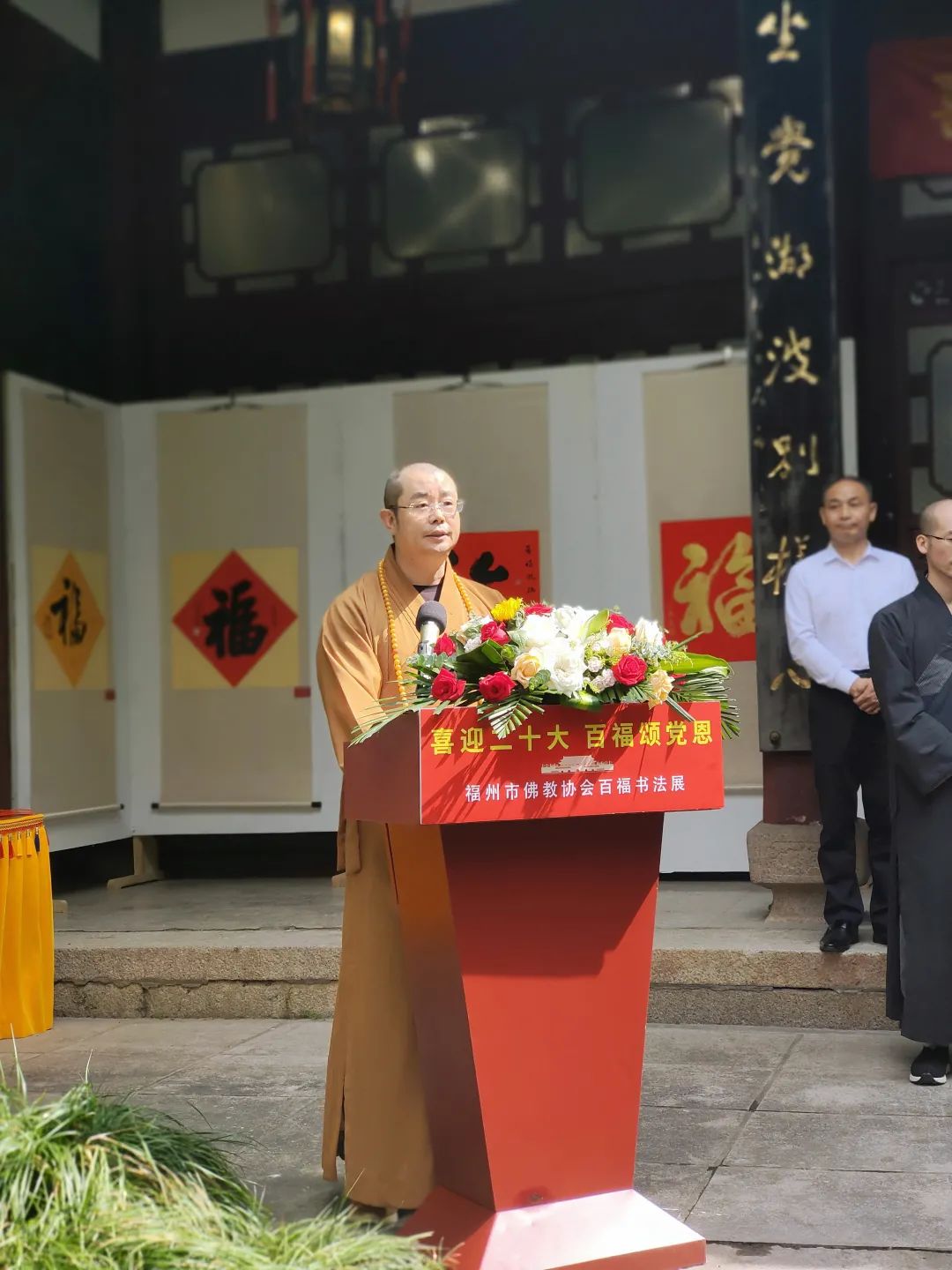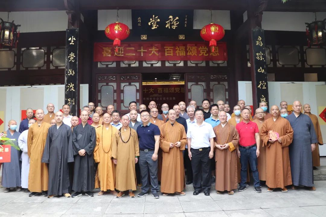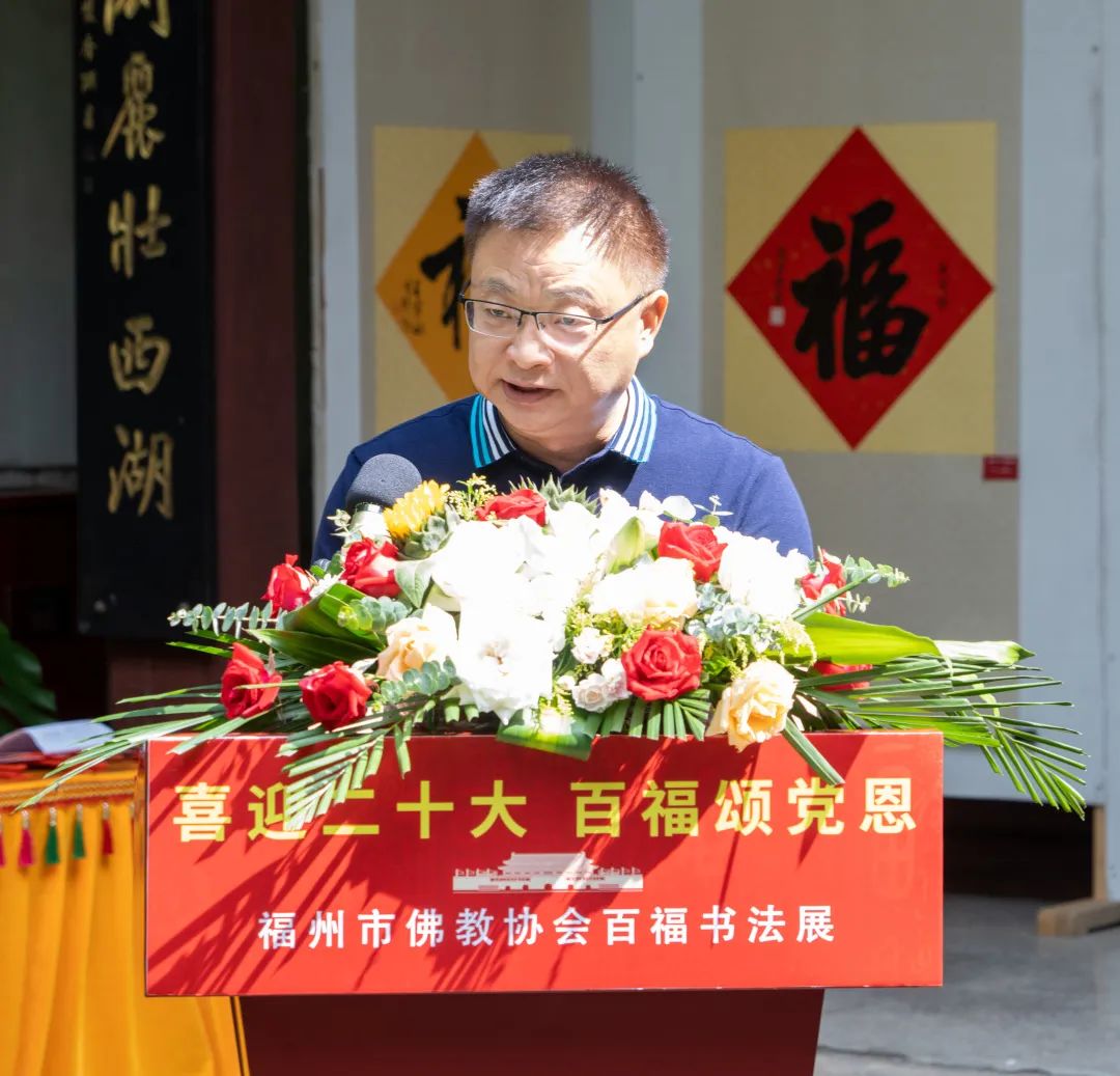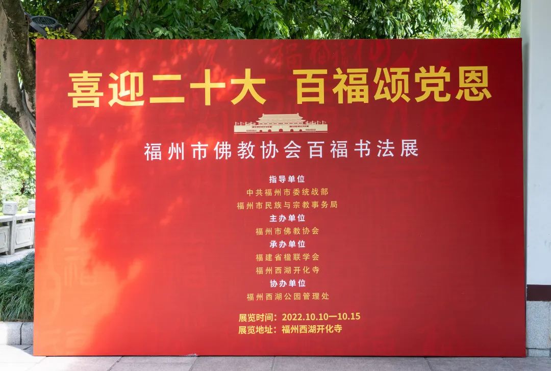 10月10日上午,由福州市佛教协会主办,福建省楹联学会和福州西湖开化寺联合承办的“喜迎二十大,百福颂党恩”——百福书法作品展在福州西湖开化寺开幕。