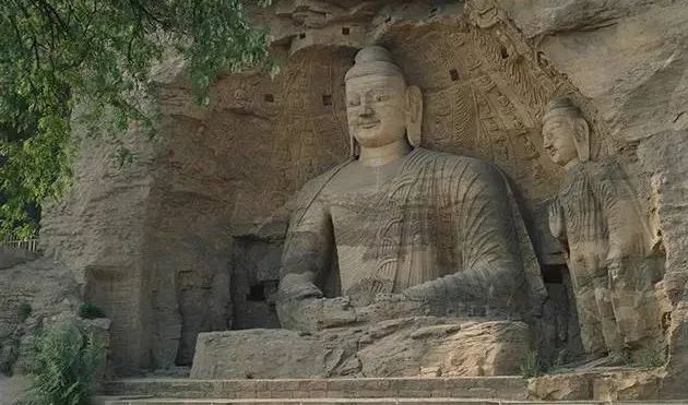 2、露天大佛前的“连三踏跺”不具有实际使用价值。如上述,与高大佛像及其周边环境空间相比较,露天大佛前的北魏“连三踏跺”显得异常娇小玲珑,并且位于大佛像盘坐双腿前方较近的位置,不是具有实际使用价值的做法,结合其出土时“石花”犹在未有任何磨损之事实,应是一种具有象征意义的佛教思想表达。