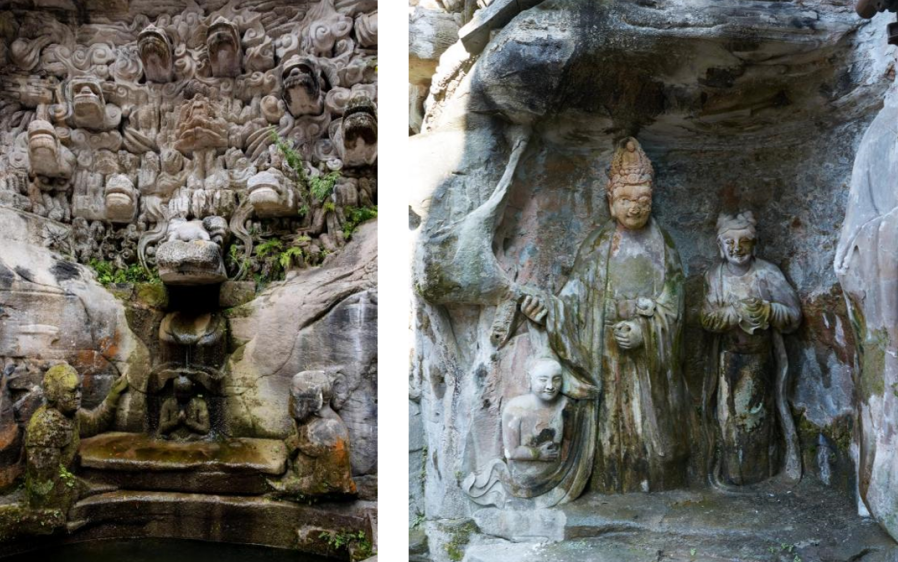 《诗经·蓼莪》是一首苦于服役,悼念父母的诗,其中唱到:“父兮生我,母兮鞠我。拊我畜我,长我育我。顾我复我,出入腹我。欲报之德,昊天罔极!”或许在这样的吟咏中,我们方能体会到宝顶山这尊涅槃像深层的,超越宗教的内涵。