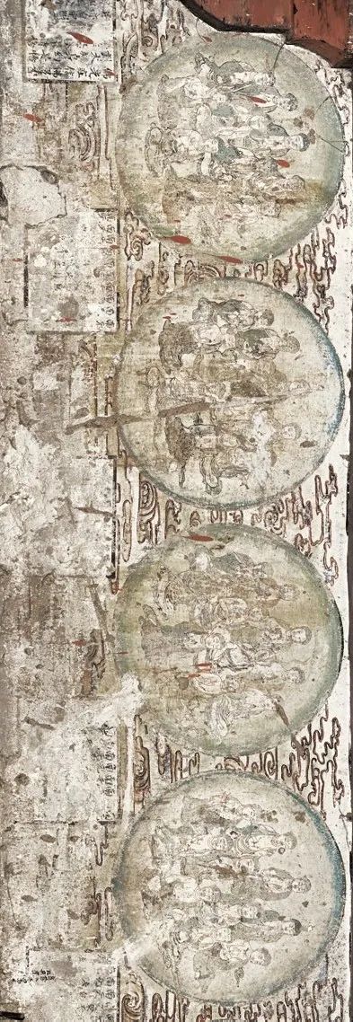 此宋代壁画当心间一幅的墨书题记,尽管多处字迹已残缺或不清,但“……(宣)和四年五月……”等纪年字样仍依稀可辨。