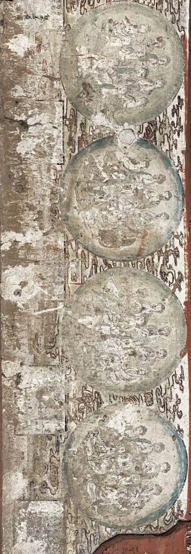 五台山的宋代寺院壁画,因墙垣倒塌、殿宇重建等原因,绝大部分今已湮灭无存如今现存的宋代寺院壁画,基本仅存佛光寺东大殿栱眼处遗存的两幅宋代“千佛图”壁画。它们的整体风貌风格,基本保持了宋代的样式、色彩,颇为珍贵。