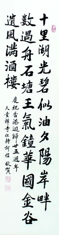 为庆祝香港回归25周年,由中国佛教协会与香港佛教联合会共同主办,香港宝莲禅寺承办,香港饶宗颐文化馆、香港大学饶宗颐学术馆及一新美术馆协办的「菩提花开–庆祝香港回归25周年佛教书画展」在香港举行。来自祖国内地和香港佛教界的高僧宿儒,共同以书画作品祝福香港繁荣稳定,祖国美丽富强!