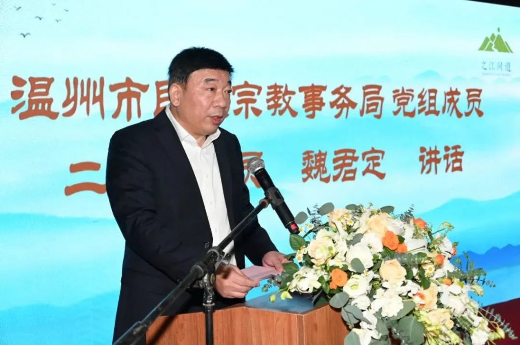 温州市民族宗教事务局党组成员、二级调研员魏君定,市委统战部民宗处处长汪娥,市民宗局宗教一处处长兰海波等相关领导,温州市书法家协会秘书长吴东来等书法界人士应邀出席,温州市佛协理事、各区县(市)佛协会长、美丽寺院代表、信众等参加。