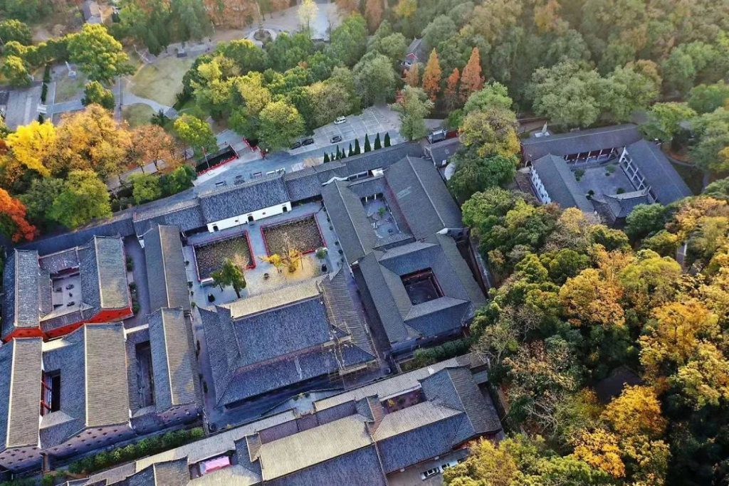 我们现在所谓寺庙格局,成型于宋代佛寺。殿堂的配置大致是,以南北为中轴线,自南往北,依次为:山门、天王殿、大雄宝殿、法堂,再后是藏经楼。