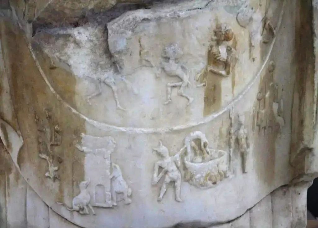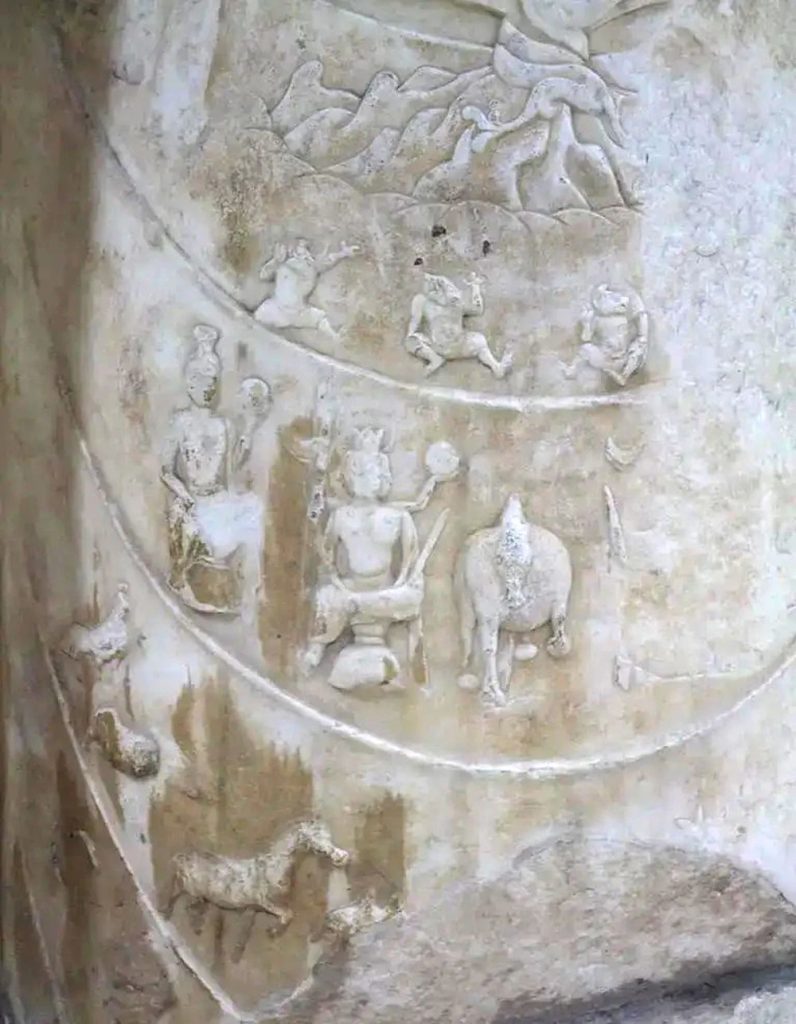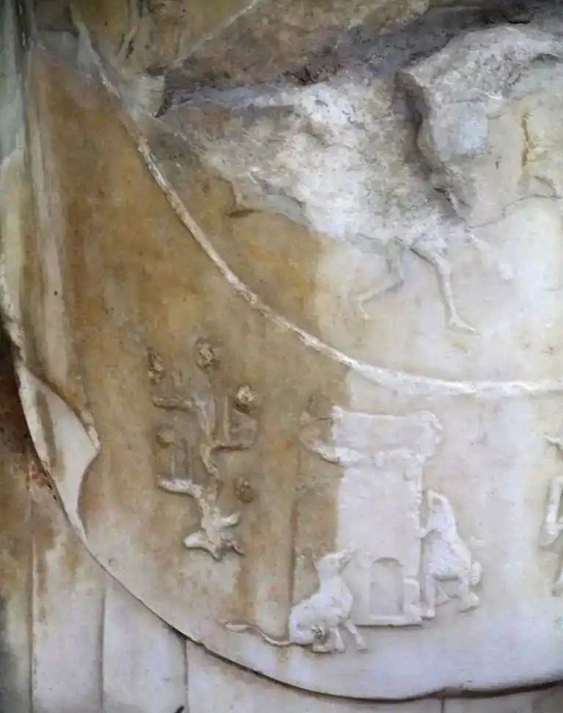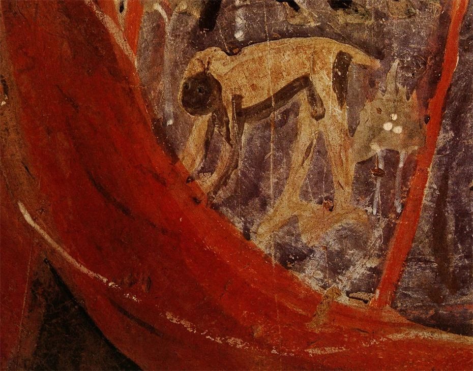 大佛的体内一角,有伏行的动物、立鸟、奔鹿等,这是鸟兽穿行于林间的——畜生界。