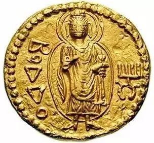 公元二世纪,古印度贵霜王朝迦腻色伽一世时期铸造的金币上便刻有佛像,是迄今为止最早的传世佛像,从佛像中我们可以清晰地辨认出佛陀着通肩大衣式佛衣。