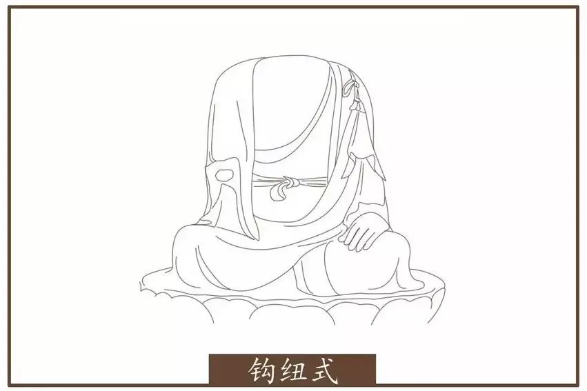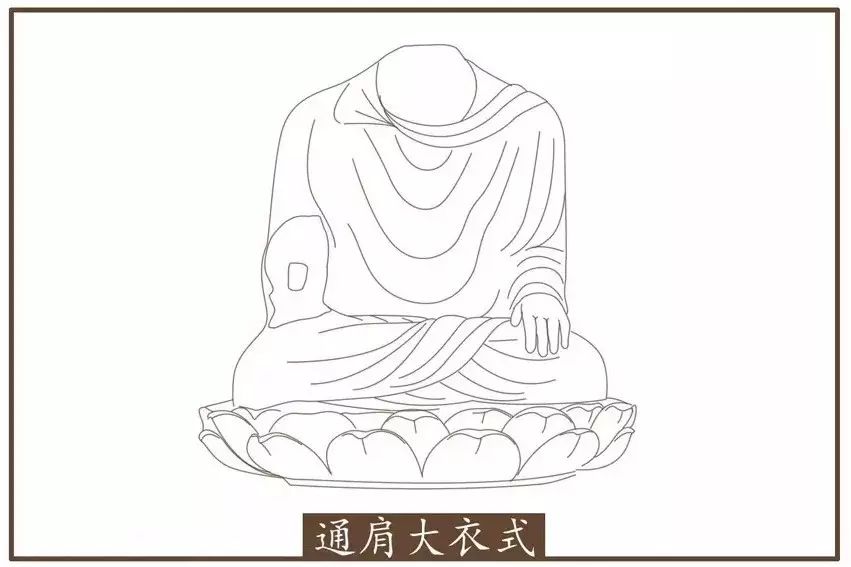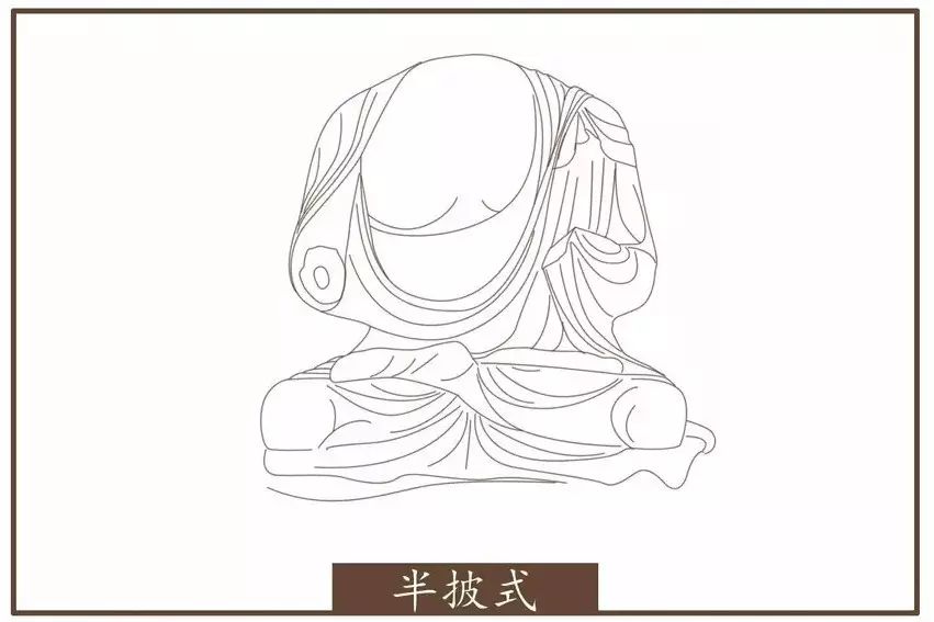这种样式比较好辨认,领口U形,垂至胸前,整体与通肩大衣有类同。
