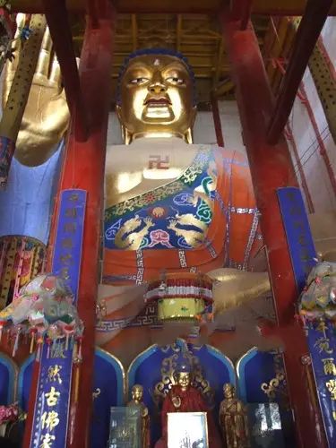 山丹大佛寺位于甘肃山丹县城西3公里处,殿内供奉的释迦牟尼坐像高35米为唐代建造的全世界最大的室内泥胎坐佛。甘肃省重点文物保护单位。