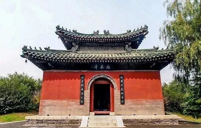 这是一座重檐盝顶式的建筑。亭内有口宋代的古井,当地人称八角琉璃井。之所以被称为龙泉井,是因为在《隆兴寺志》中记载着古井内“龙潜其中,求雨有应”。也就是说,在这口井中藏着一条小龙,而且如果向它求雨的话,非常灵验。历史上也真的有几次在此求雨的记载,真定一带也真的风调雨顺,因此这口八角井,也称作龙泉井、灵泉井,明代的时候,人们根据这种说法兴建了这座龙泉井亭。