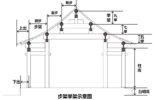 大式建筑各步可依次为五举、六五举、七五举、九举等。