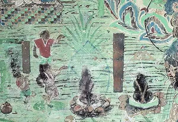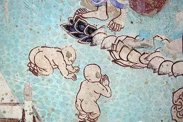 北朝至隋代,儿童图像主要出现在佛教本生、因缘及佛传故事画当中,人物很小,形象简单,大多用线条粗略勾勒,类似漫画或示意图,主要是为了表现故事情节,只有个别洞窟中的儿童形象较为逼真;