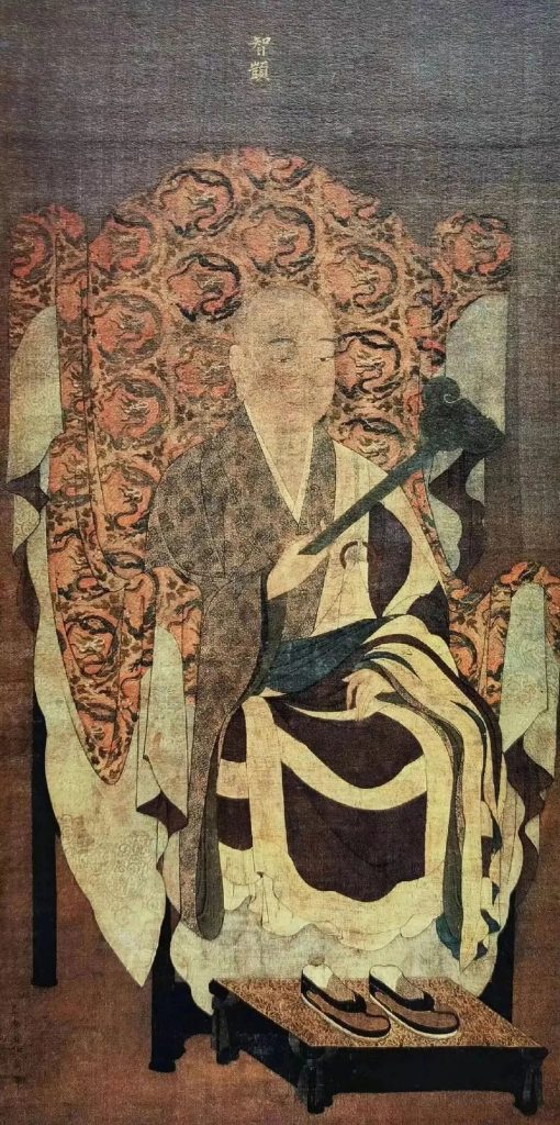 在38岁时。听到大师的决定,宣帝令他留下,但他的决心仍然没有动摇。他进入了天台山,到达了风景秀丽的地方–布龙峰,这是他之前梦中见到过的地方。他立即在那里修建了一座道场,命名为 “修禅道场”,并在那里修炼苦行。第二年,当他登上天台山最高峰华顶峰,独自禅修时,他听到了雷鸣般的轰鸣声,山峰震动,他对这恐怖的魔鬼般的场景毫不在意。在这他对《法华经》有了不乏领悟,领会了天台宗深刻而完整的教义。后人将这位伟大的大师尊为“东土小释迦”。
