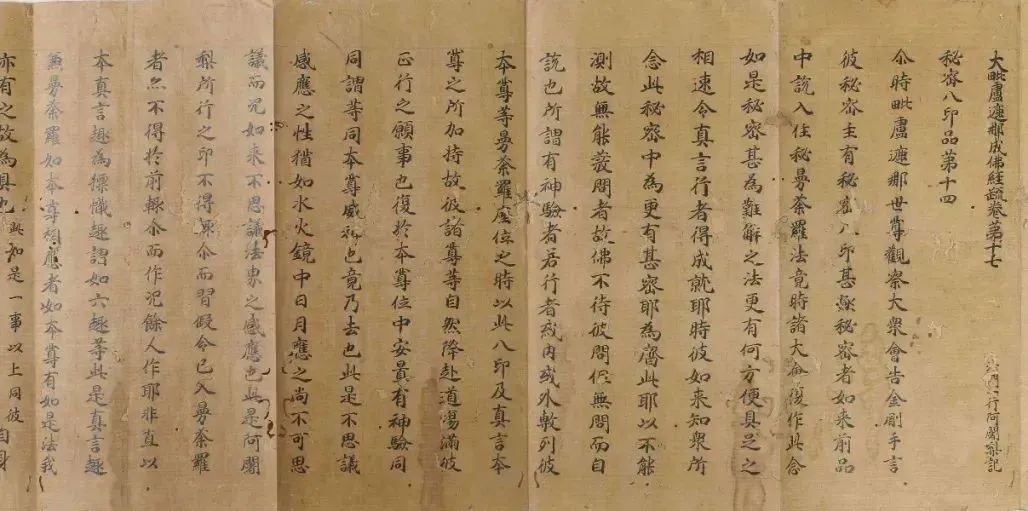 开元十二年,善无畏随驾入东京洛阳,奉诏于福先寺译《大日经》。此经梵本有十万颂,善无畏撮摘其要,译出《大毘卢遮那成佛神变加持经》七卷(沙门宝月译语,一行笔受缀文),译得上符佛意,下契根缘,此即唐密根本经典。又译出《苏婆呼童子经》三卷、《苏悉地羯罗供养法》三卷等,并作《大日经》诸咒梵汉对译,悉昙之学由此而兴。