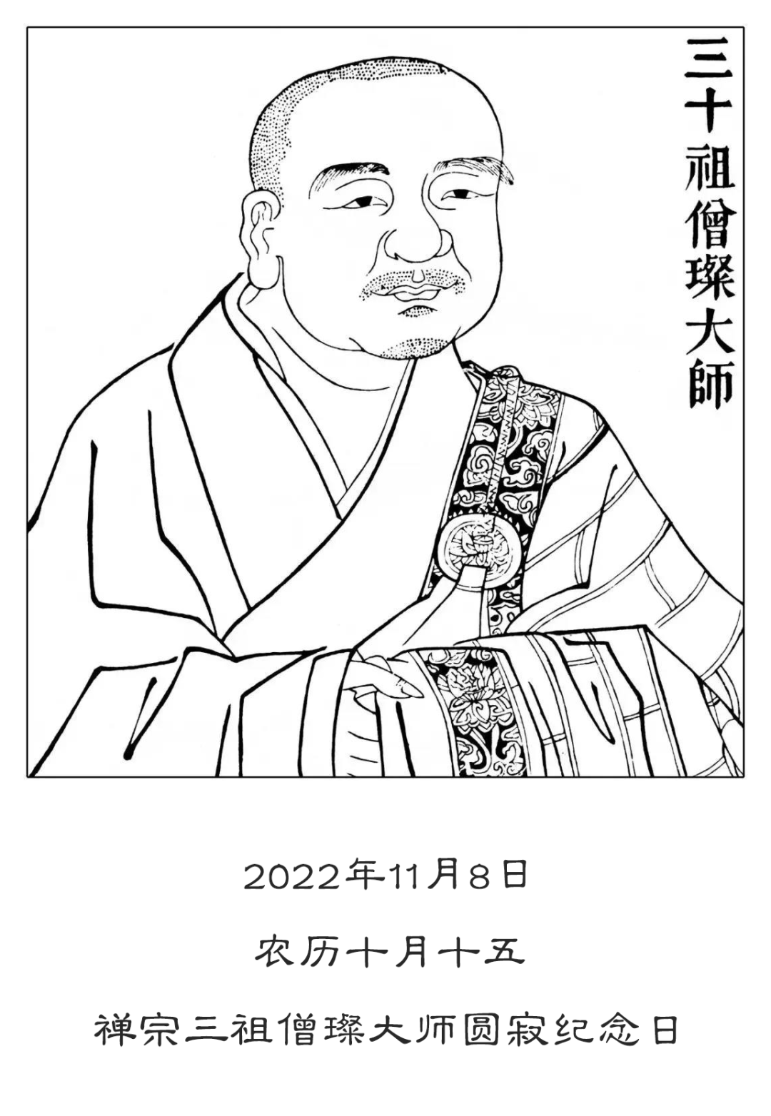 三祖僧璨大师寂于隋大业二年(606)。入寂前,僧璨禅师曾告诉大众云:“余人皆贵坐终,叹为奇异,余今立化,生死自由(别人都把坐着入灭看得很重,认为这样的走法希有难得,我则不然,我今天要站着走,以示生死自由)。”说完,便用手攀着树枝,奄然而化。