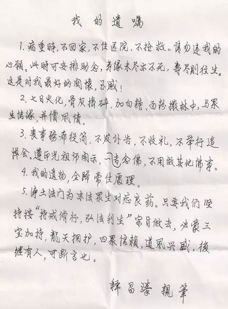 ▲昌臻老法师生前亲笔遗嘱(原件扫描)