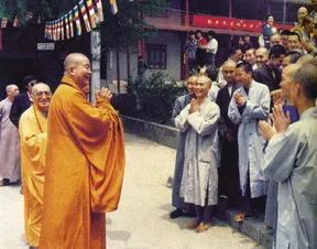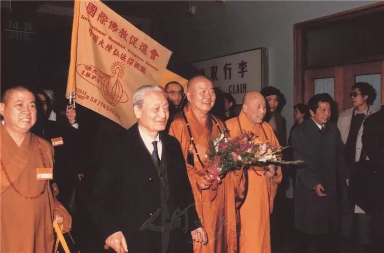一九八九年三月二十七日,星云大师率领正团七十二人,副团五百人组成的“国际佛教促进会中国大陆弘法探亲团”,踏上了阔别整整四十年的祖国乡土,中国佛教协会会长赵朴初居士与外交部长姬鹏飞亲自到机场欢迎,赵朴老在北京机场见到星云大师的第一句话就是:“干载一时,一时千载!”短短八字,却意义深远。正是一湾狭长的海峡,将两岸人民分成了两个世界,这次见面,对于两岸佛教来说是继往,也是开来。在公宴的致词中,赵朴老以“万里香花结胜因”来表达心中热诚的欢迎之意,他又肯定星云大师一行的到来,是两岸佛教相互了解、互相合作的良好开端,无论在佛法上,在世间法上都能结出殊胜之果。由于是台湾佛教界第一次公开在大陆的弘法活动,星云大师受到了大陆官方最高规格的礼遇,在人民大会堂他与国家主席杨尚昆和政协主席李先念进行了会晤,并首开在北京人民大会堂演讲之例,举行了三次弘法演讲、三次宗教座谈会,另应邀主持佛像开光、皈依典礼,和多次即席开示说法等弘法活动。一趟大陆之行,不仅提升了中国佛教的士气,促进佛教文化、学术研究的交流,更超越海峡两岸的政治现实。使得北京知识界回响频频,名作家白桦更以“芬芳的馈赠”为文,感念大师大陆之行给中国大陆带来的正面影响。