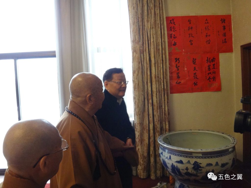 2013年3月31日,星云大师来到凤凰在北京钓鱼台的办公室,看到墙上贴着的挥春