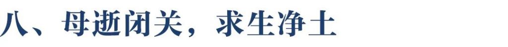 二十八岁时,母亲病笃,大师痛切肺肝,丧葬尽礼,誓住深山,掩关修道。关中大病,乃以参禅功夫,求生西方净土。