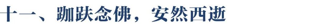 五十七岁时,大师示疾,遗命身体火化,屑骨和粉,分施水陆禽鱼,以结往生西方之缘。跏趺而坐,面西念佛,举手而逝。