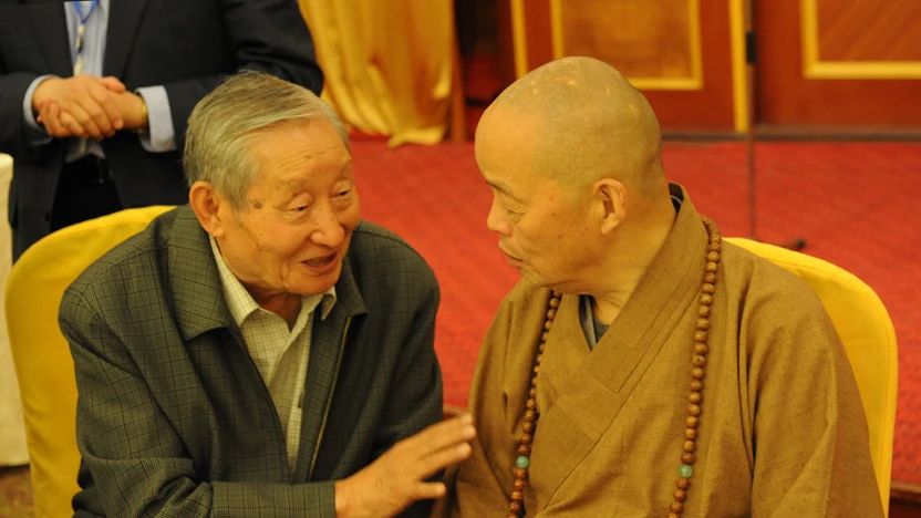 黄心川教授与净慧长老,照片摄于2011年5月首届河北“赵州禅 、临济禅、生活禅”学术论坛。