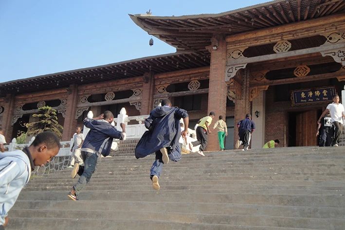 2003年,ACC(阿弥陀佛关怀中心)成立,一群群皮肤黝亮,笑容灿烂的非洲孩子,在这片净土之上,打着中国功夫,操着一口口流利的中文,喃喃佛语。