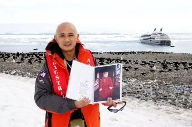 2011年12月我去南极大陆时,背着师父的照片,让师父也看看南极这块人类最后的净土,加持一下南极所有众生……