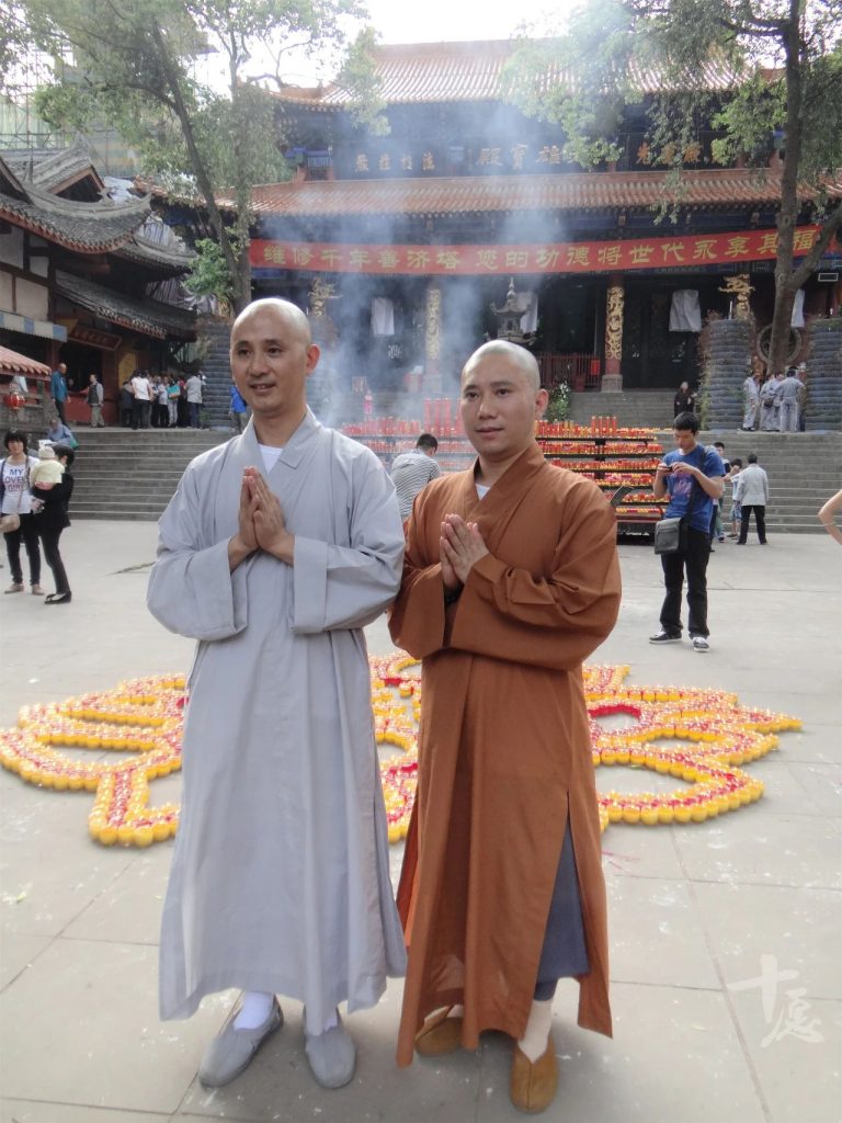 寂静法师(左)和照旭法师(右)在海山长老追思会现场
