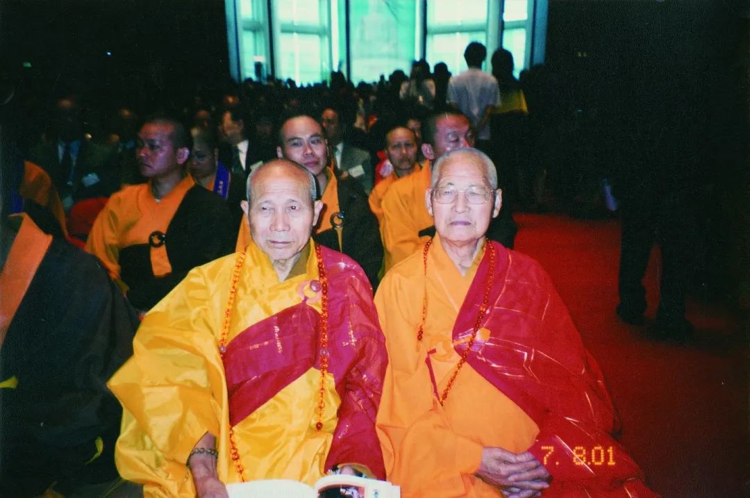 2004年5月护送佛指舍利在中国香港供奉,5月26日四月初八佛诞日(长老圆寂前一日),与悟谦法师(右)一同参加佛指舍利祈福大会开幕典礼