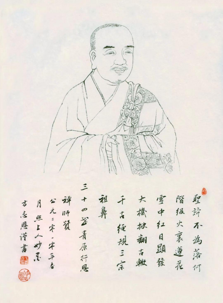 青原山静居寺行思禅师,六祖慧能大师之法嗣,吉州庐陵(今江西吉安)人,俗姓刘。行思禅师自幼出家,渊默(深沉不言)乐道,同修们每次群居论道,行思禅师皆默然自照。后闻曹溪法盛,遂前往参礼。初礼六祖,行思禅师便问:“当何所务,即不落阶级?”