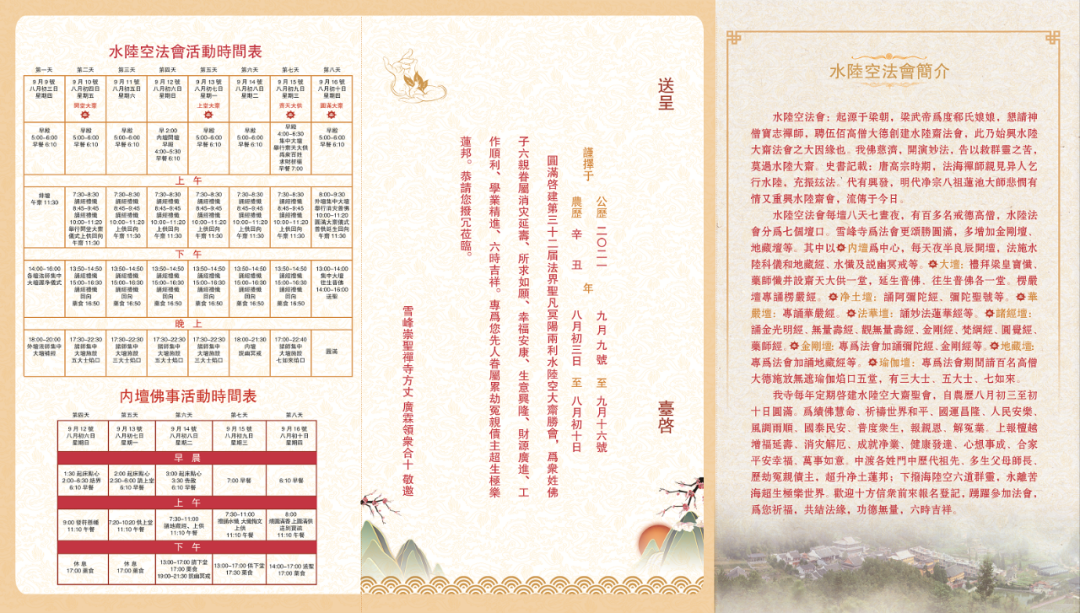谨择于2021年9月9日至16日(农历八月初三至初十)隆重启建第三十二届法界圣凡冥阳两利水陆空大斋胜会。