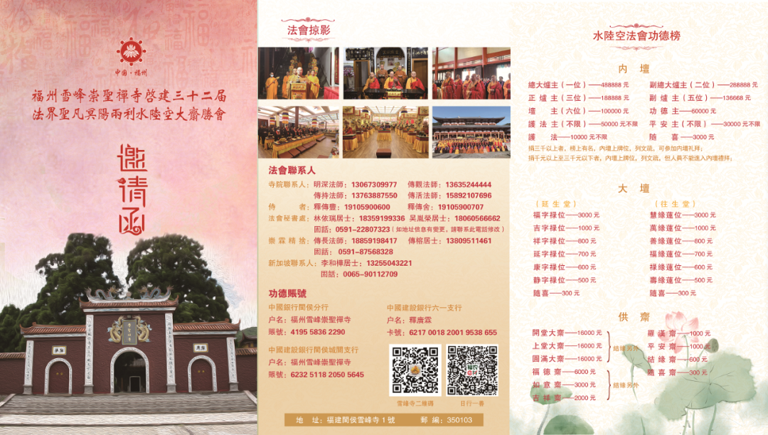 雪峰崇圣禅寺水陆法会八天七昼夜,礼请戒德高僧,分十个坛口