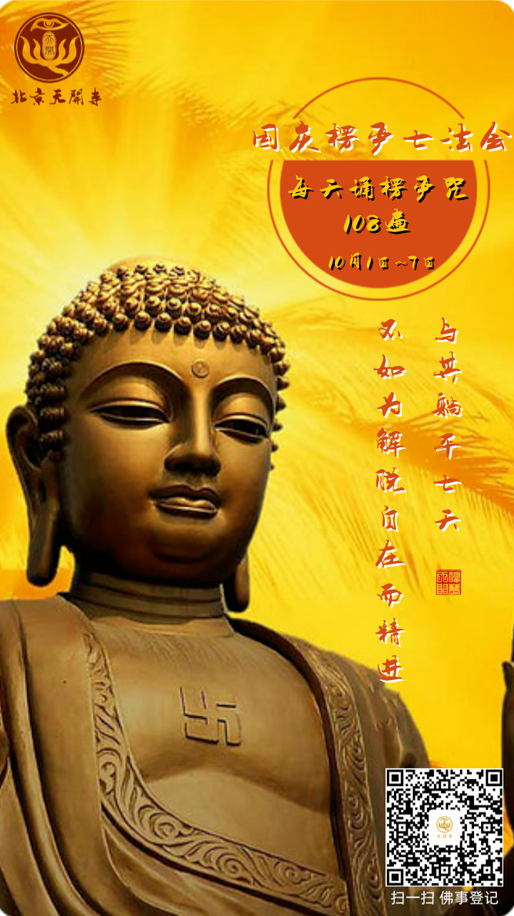2021年10月1-7日,北京天开寺将举行国庆楞严七法会。法会期间,将连续七天,每日持诵《楞严咒》108遍。此次法会是本年度最后一次楞严七共修活动。